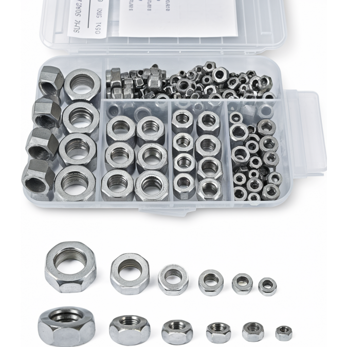 The Hillman Stainless Steel Hex Nuts Assortment Kit provides a comprehensive selection of six metric sizes—M3, M4, M5, M6, M8, and M10—conforming to DIN 934 standards. Crafted from high-quality stainless steel, these hex nuts offer excellent corrosion resistance and durability, making them suitable for various applications, including construction, machinery, and automotive repairs. The kit is organized in a sturdy, compartmentalized storage case, ensuring easy identification and access to the desired size.