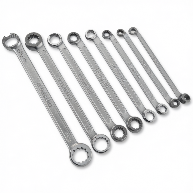 The Sealey Premier 8 Piece Cold Stamped Offset Double End Ring Spanner Set Metric is designed for professionals seeking reliable performance. Made from hardened and tempered steel, this set provides a precise fit, corrosion resistance, and effective torque distribution.