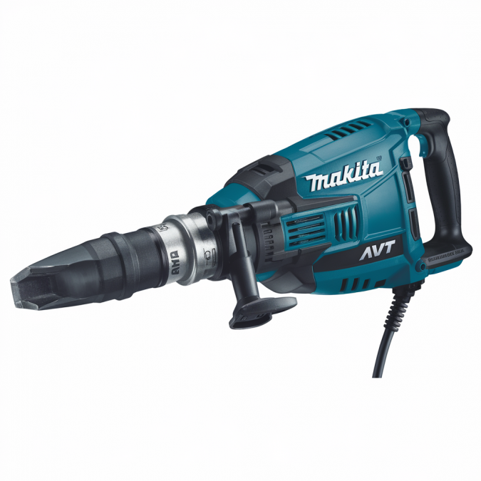 The Makita HM1214C is a robust demolition hammer engineered for heavy-duty applications. Powered by a 1,510W motor, it delivers an impact energy of 19.9 joules and operates at 950–1,900 blows per minute. Equipped with Anti-Vibration Technology (AVT), it ensures reduced operator fatigue during prolonged use. The SDS-MAX shank facilitates quick bit changes, and its compact design allows for efficient material removal in concrete and masonry tasks.